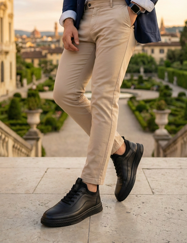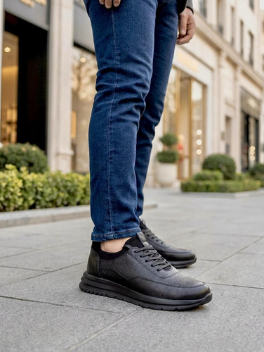کفش کتونی همه کاره دهنه جورابی تمام چرم طبیعی گاوی اصل تبریز طرح ۲۰۲۶ ایتالیا